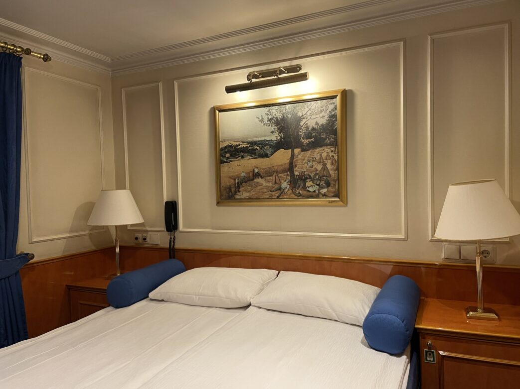 Freundlich geht es auf dem Schiff mit der Einschiffung weiter. Wer möchte, kann hier schon Lebkuchengebäck beim Einchecken genießen. Wir wollen jedoch zunächst zur Kabine, wohin uns der Kabinenstuart freundlich begleitet. Einladend, sauber und hell, eine Flasche Wasser und das Willkommenskärtchen mit dem Namen unseres Stuart Ketmut erwarten uns. Wir schauen auf das Wasser, noch ist es die Havel. In der Nacht wird uns das Motorschiff nach Brandenburg/Havel bringen. Wir fühlen uns wohl, freuen uns auf das, was kommt. Sind für Überraschungen offen …