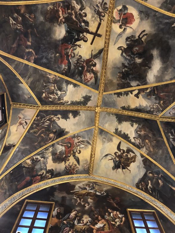 Verbunden ist das Kastell mit der Altstadt von Gallipoli und dem Damm durch die ehemalige Markthalle ,ejetzt beherbergt sie eine Shoppingpassage. Vom imposanten Castello aus ist es nicht weit hinüber zur Kathedrale Sant‘ Agata aus dem 17. Jahrhundert. Ihre Fassade ist im üppigen Lecceser Barock ausgeführt. Gemälde der sogenannten Salento-Schule des 17./18. Jahrhunderts schmücken das Kircheninnere. auf uns wirkt es wie eine Gemäldegalerie. Mehr als über 100 Werke zumindest in Italien bekannter Künstler, darunter Luca Giodano, Giovanni Andrea Coppola und Gian Domenico Catalano, sind hier zu besichtigen. So hat es Reisebuchautor Martin Haller in seinem lesenswerten Apulien – Reiseführer beschrieben.