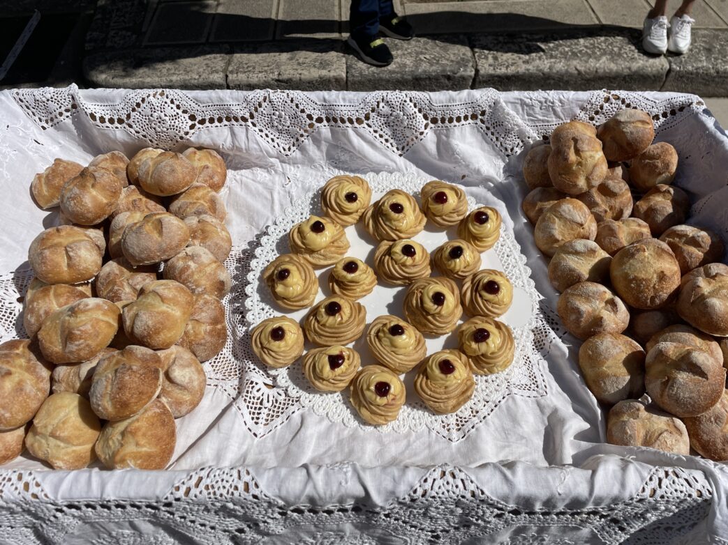 Wir genießen bei herrlichem Sonnenschein die vom Bürgermeister mitgebrachten kleinen Süßigkeiten „le zeppole di San Guiseppe“ und stimmen uns so auf den bevorstehenden „Tag des heiligen Guiseppe“ ein.