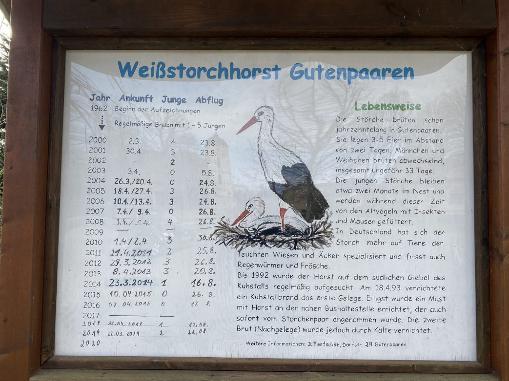 Ab und an schaut ein Storch vorbei. Es muß an irgendetwas liegen, dass sich dort über dem Lavendelhof, gegenüber dem Landgasthof „Zum alten Krug“ bislang kein Pärchen fest ansiedeln wollte.