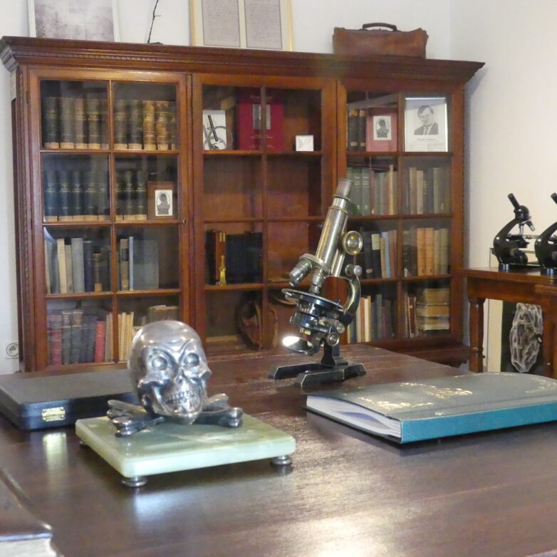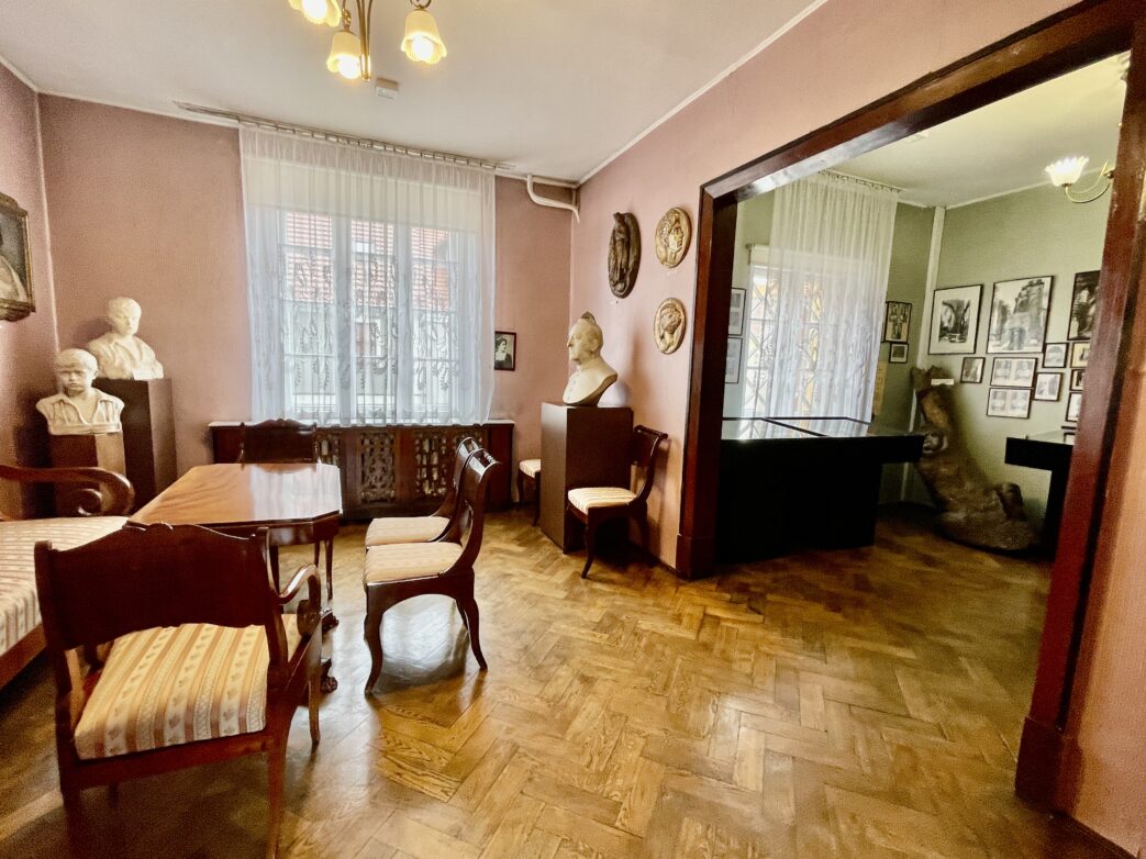 Das obere Stockwerk der zweietagigen Villa ist dem Bildhauer und seinen Arbeiten gewidmet. Neben Möbeln aus seiner Zeit bestaunen wir Skulpturen und Gemälde des Künstlers. Dokumente, Fotos und Andenken aus seinem Leben ergänzen die kleine Präsentation.