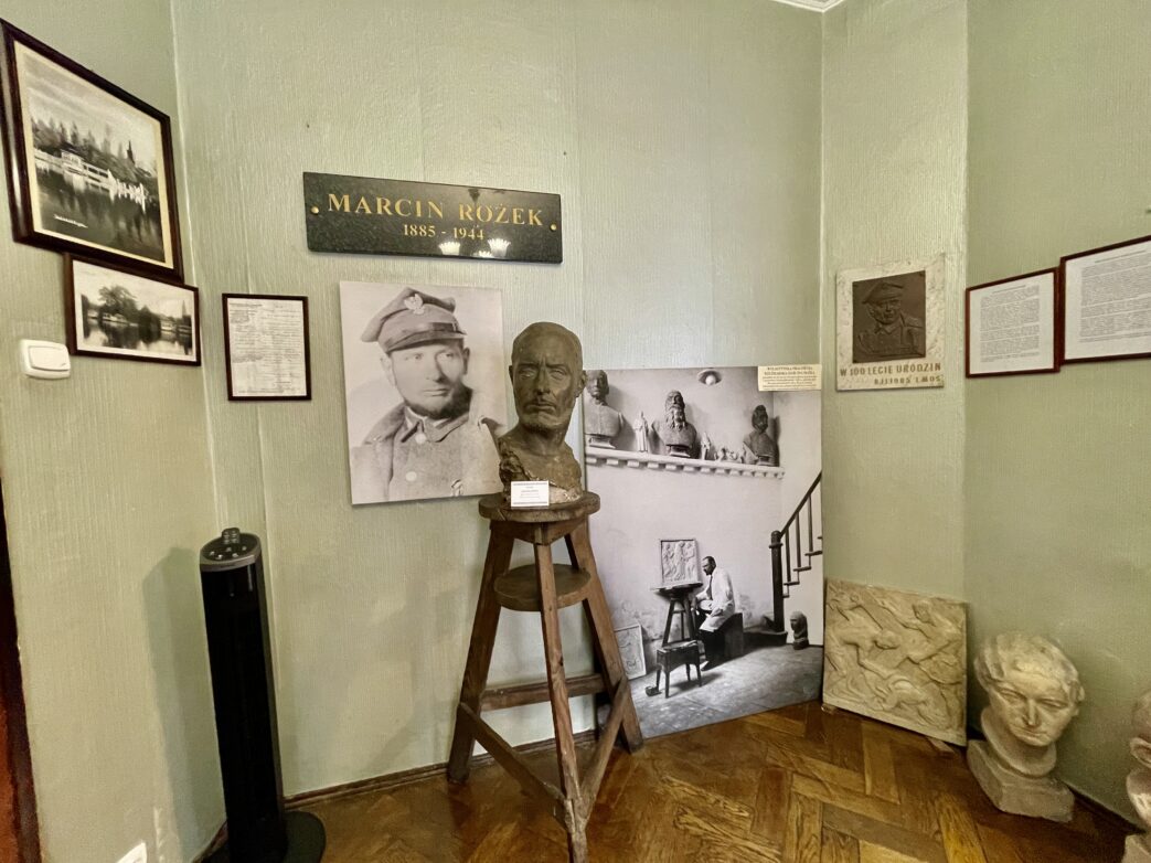 Überquert man die Straße vor dem Fala-Hotel und geht rechts um die Ecke steht man nach wenigen Schritten vor dem Marcin-Rożek-Museumsin der 5 Stycznia Straße 34. Eine der bekanntesten Personen von Wolsztyn ist der Bildhauer, Maler, und Autor Marcin Rożek (1885-1944). Einen Teil seiner Kindheit verbrachte der Sohn eines Bahnarbeiters ab 1893 in Wolsztyn (deutsch: Wollstein). Nach einer Steinbildhauerlehre bei einem Steinmetz im nahen Poznań (Posen), belegte er, gefördert durch ein Stipendium, von 1905 bis 1909 an der Kunstakademie in München das Fach Bildhauerkunst. Nach einem Parisaufenthalt (1910-1911), ging Rożek im Jahr 1913 nach Posen zurück. Während des Großpolnischen Aufstandes (1919) kämpfte er um die Wiedergewinnung von Polens Unabhängigkeit. Danach setzte er sich aktiv für die Wiederbelebung des kulturellen Lebens in Poznań ein. In Posen gibt es mehrere von ihm geschaffene Denkmäler, so das Chopindenkmal im Chopinpark, wie auch die Figur auf der vor dem Rathaus stehenden Prangersäule auf dem Marktplatz.