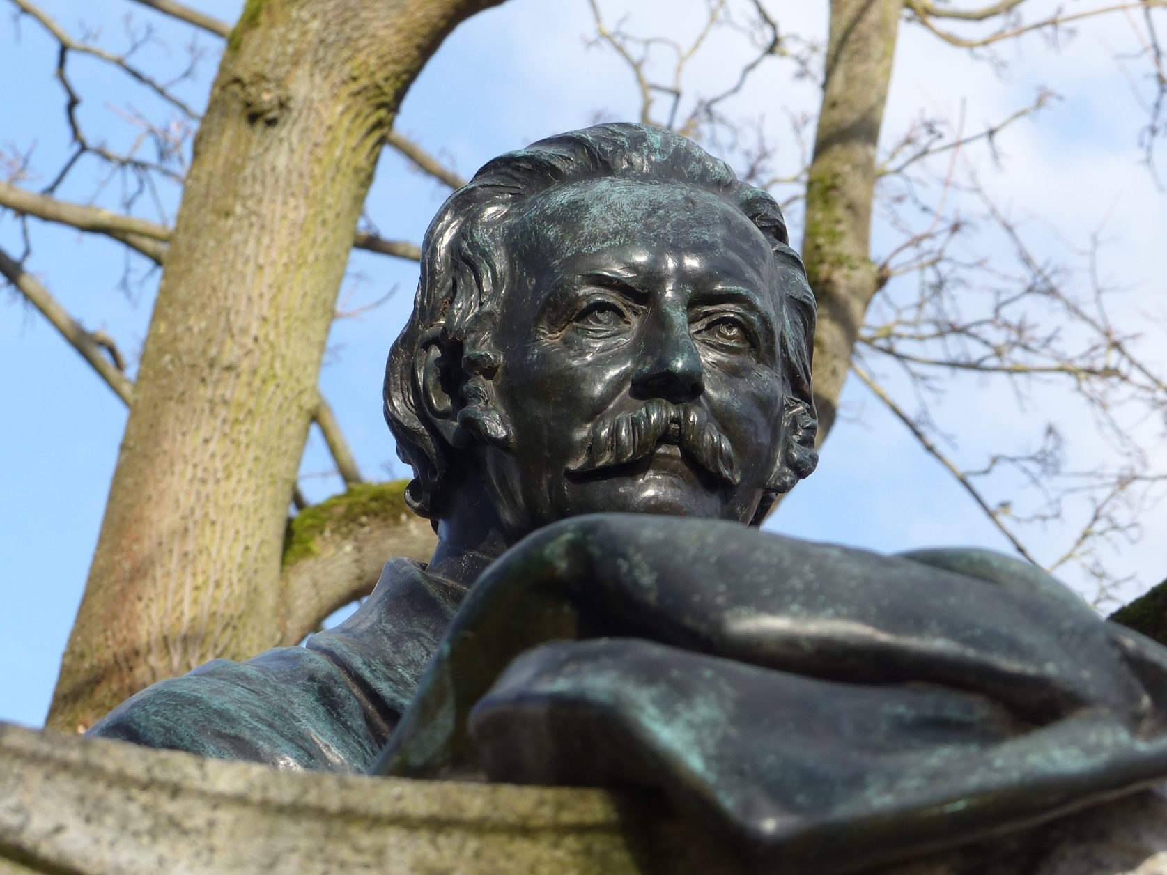 Das von Dietrich Rohde gestaltete Fontane-Denkmal steht im Precise Resort Schwielowsee, Foto: Weirauch