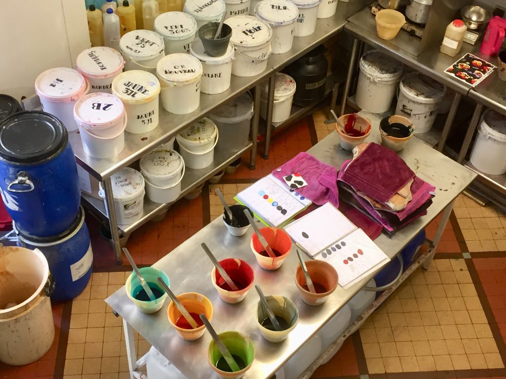 Wir fahren durch die Altstadt zum Atelier de Soierie, das nur wenige Meter vom Place des Terre entfernt liegt. In der Seidenwerkstatt empfängt uns Genet Gerrary. Er zeigt uns, wie die Seidenstoffe durch Siebdruck oder von Hand bemalt werden. Als Kopftücher, Schals, Stolen oder Krawatten werden sie später in eigenen Shops oder online verkauft. Aber bis dahin ist es ein langer Weg. Die Seidenwaren werden in der Region Lyon von talentierten Kunsthandwerkern mit langjähriger Erfahrung entworfen, produziert und vollständig veredelt. Das in fünfter Generation geführte Geschäft steht für traditionell und in hoher Qualität hergestellte Spitzenprodukte. Sie machen nach wie vor das Markenzeichen Made in France aus.