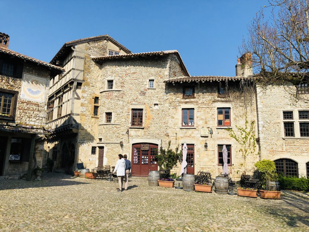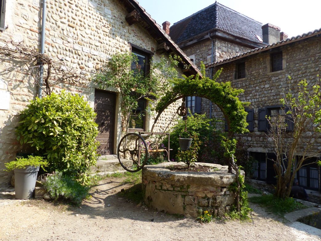 Unsere kundige Reiseleiterin klärt uns auf. Der Name Pérouges lässt vermuten, dass der Ort von gallischen Siedlern gegründet wurde, die aus der italienischen Kolonie Perugia zurück in ihre Heimat gekehrt waren. 1167 verteidigte Seigneur d’Alto die Mauern der Stadt gegen den Erzbischof von Lyon. Die Ortschaft erlangte 1236 kommunale Unabhängigkeit.