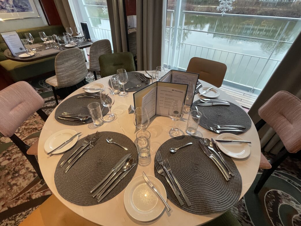 Einen Michelinstern verdient unserer Meinung nach auch die Kulinarik an Bord. Frisch zubereitete Produkte mittags und abends zu mehrgängigen Menüs verarbeitet, machen alles Essenszeiten zu einem unvergesslichen Erlebnis. Es sind ganz besondere Verwöhnungzeiten, die wir uns in der Vorweihnachtszeit schenken. Manch angerichtetes Mahl wirkt wie ein Gemälde, ein Stillleben voller Farbenpracht. Führt uns für einige Zeit aus dem Alltag hinaus. Sinnlich, geschmacklich verführerisch. Die Wahl zwischen Fleisch-, Fisch-, vegetarischen Gerichten oder einer Alternative fällt jedes Mal schwer. Dazu als Vorgerichte Salate oder Suppen, als Desserts verführerische Kreationen … Für uns waren es wieder verweggenommene Weihnachtsmenüs. Das gilt besonders für das Menü am 3. Advent. Nach dem Abschiedsempfang im Salon sind alle Gäste zu einem exklusiven Galadinner inspired by Johann Lafer in das Restaurant geladen. Spitzenkoch Johann Lafer ist nicko cruises Genussbotschafter. Auch wenn er persönlich nicht an Bord ist, prägt seine Handschrift die Küche der gesamten nicko- cruises-Flotte. „Denn mit seiner Leidenschaft für das Handwerk, seiner Liebe zum Detail und seinem untrüglichen Gespür für Aromen verwandelt er jede Zutat in ein Erlebnis.“ – So lesen wir m time to discover Magazin „10 Jahre cruiseClub – Magische Momente, die bleiben.“ Beim Gala-Dinner geht es um Emotionen, die nachhallen, – so kraftvoll wie ein Applaus! Und so endet das Gala-Dinner mit einem lang anhaltenden Applaus der Genießer.