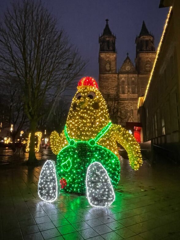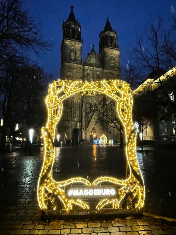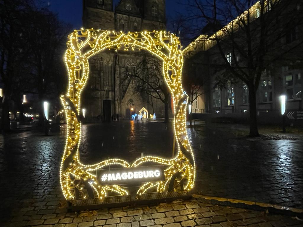 Andere genießen individuell die traditionelle Magdeburger Lichterwelt, die noch bis zum 2. Februar 2024 leuchtet. Mit mehr als einer Million LEDs hat Magdeburg die umfangreichste Weihnachts- und Winterbeleuchtung in Mitteldeutschland. Imposante Lichtmalereien, viele beleuchtete Fotorahmen für diejenigen, die gerne Selfie machen, imposante Großelement für Fotomotive in der Altstadt.