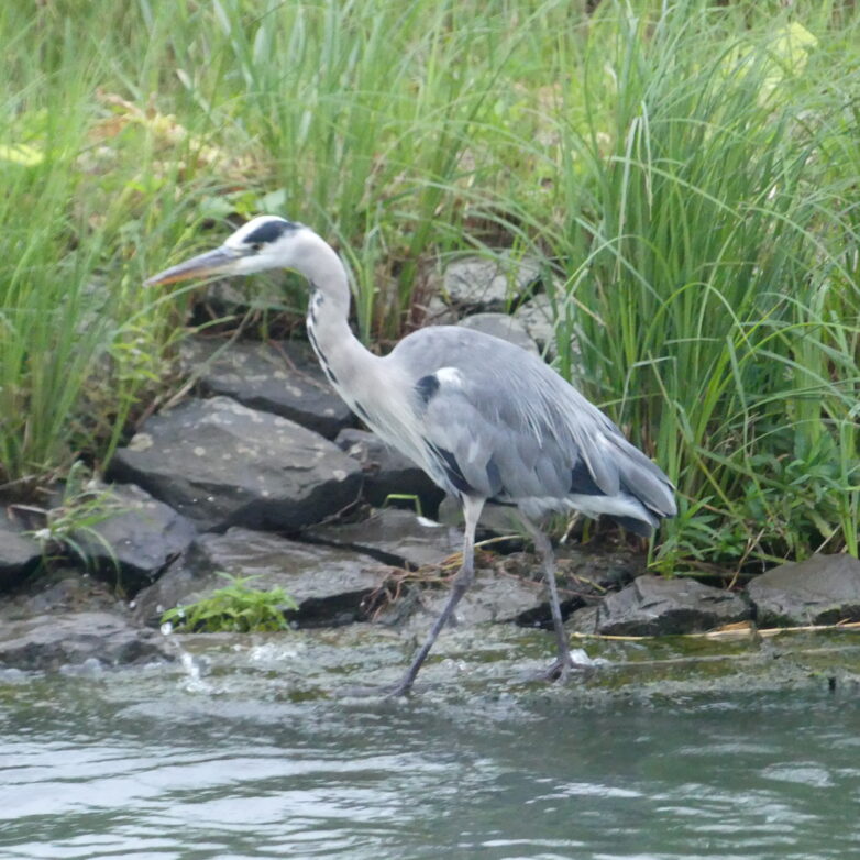 Frühmorgens um 6 Uhr: Ein Reiher vor dem Fenster der Kabine….