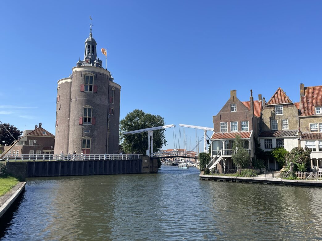 Am Eingang des sehenswerten Enkhuizer Hafenviertels thront stolz und wehrhaft der früher unüberwindliche Verteidigungsturm Drommedaris. Er entstand im 16. Jahrhundert als Teil der ersten Stadtmauer und diente lange als Gefängnis. Wir lauschten dem Glockenspiel. Sehenswert ist das Zuideseemuseum, es illustiert die durch den Bau des Abschlussdeichs hervorgerufene Verwandlung des IJsselmeers als Teil der Nordsee in das heutige Binnengewässer. Leider war der Besuch in der wunderschönen Stadt zu kurz, um sich das Museum anzuschauen.