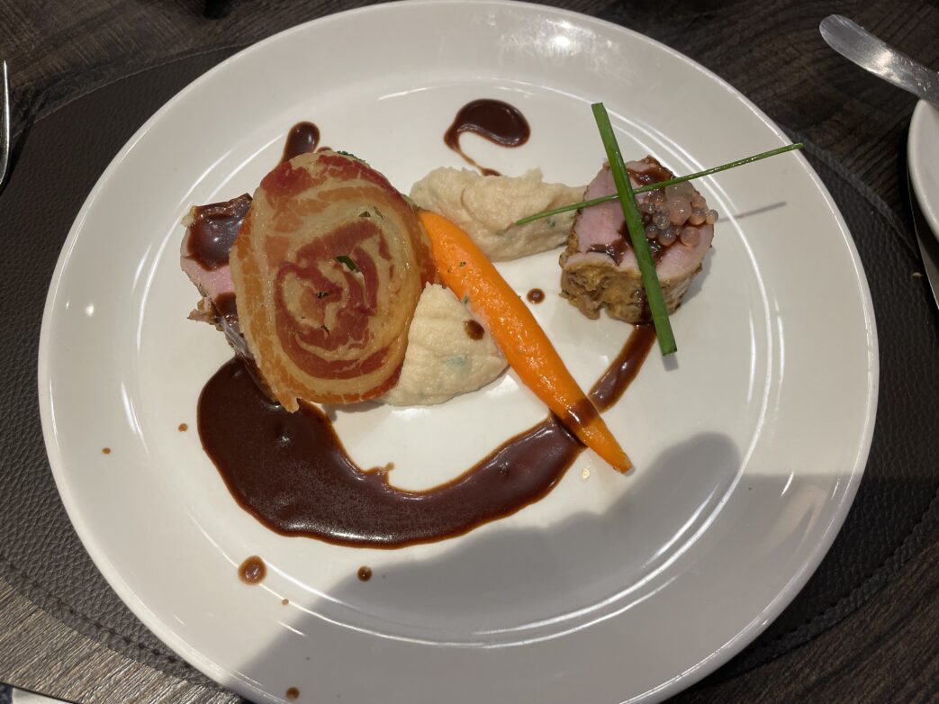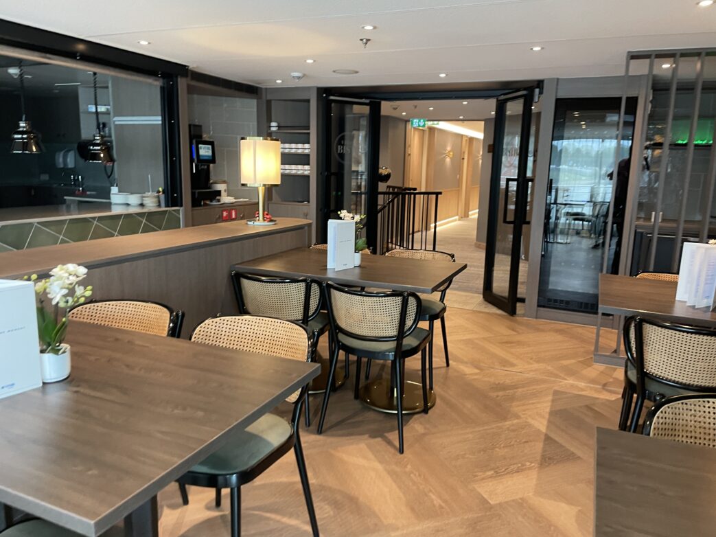 Dem Passagieren stehen 88 Kabinen, darunter einige Suiten zur Verfügung. Für 175 Gäste hat das 2022 erbaute 135 Meter lange und elf Meter breite Schiff Platz. Hauptrestaurant ist das „Riverside“. Elegant und modern gestaltet, mit einem Büfett im hinteren Bereich für das Frühstück, werden auf Premiumniveau abwechslungsreiche Menüs serviert, mit veganen und vegetarischen Optionen. Mehr erfahrt ihr weiter unten. Am Heck lädt „Viva Bistro“ für den kleinen Hunger mit schnellen Gerichten abends und mittags ein. Die Speisekarte bleibt dort die gesamte Reise gleich. Eine Reservierung ist aufgrund der knappen Platzanzahl ratsam.