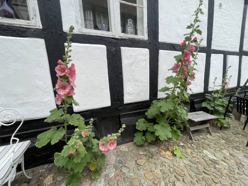 Hier war Tendern mit Zodiacs angesagt. Wir besuchten älteste Ærøskøbing, ein Märchenort: bunte Fachwerkhäuschen, von Stockrosen umrankte alte Türen und Fenster. Fast 40 Gebäude der gut erhaltenen Kaufmannsstadt des 17. und 18. Jahrhunderts stehen unter Denkmalschutz, darunter das älteste Postamt Dänemarks von 1749. Die Kirche in Ærøskøbing wurde zwischen 1756 und 1758 erbaut. Ab 1750 (bis 1864) gehörte ganz Ærø zum Herzogtum Schleswig. Die Farbgebung des Kircheninneren soie die Blumenmotive der Kirchenbänke wurden bei einer umfassenden Restaurierung 1950 ausgeführt.
