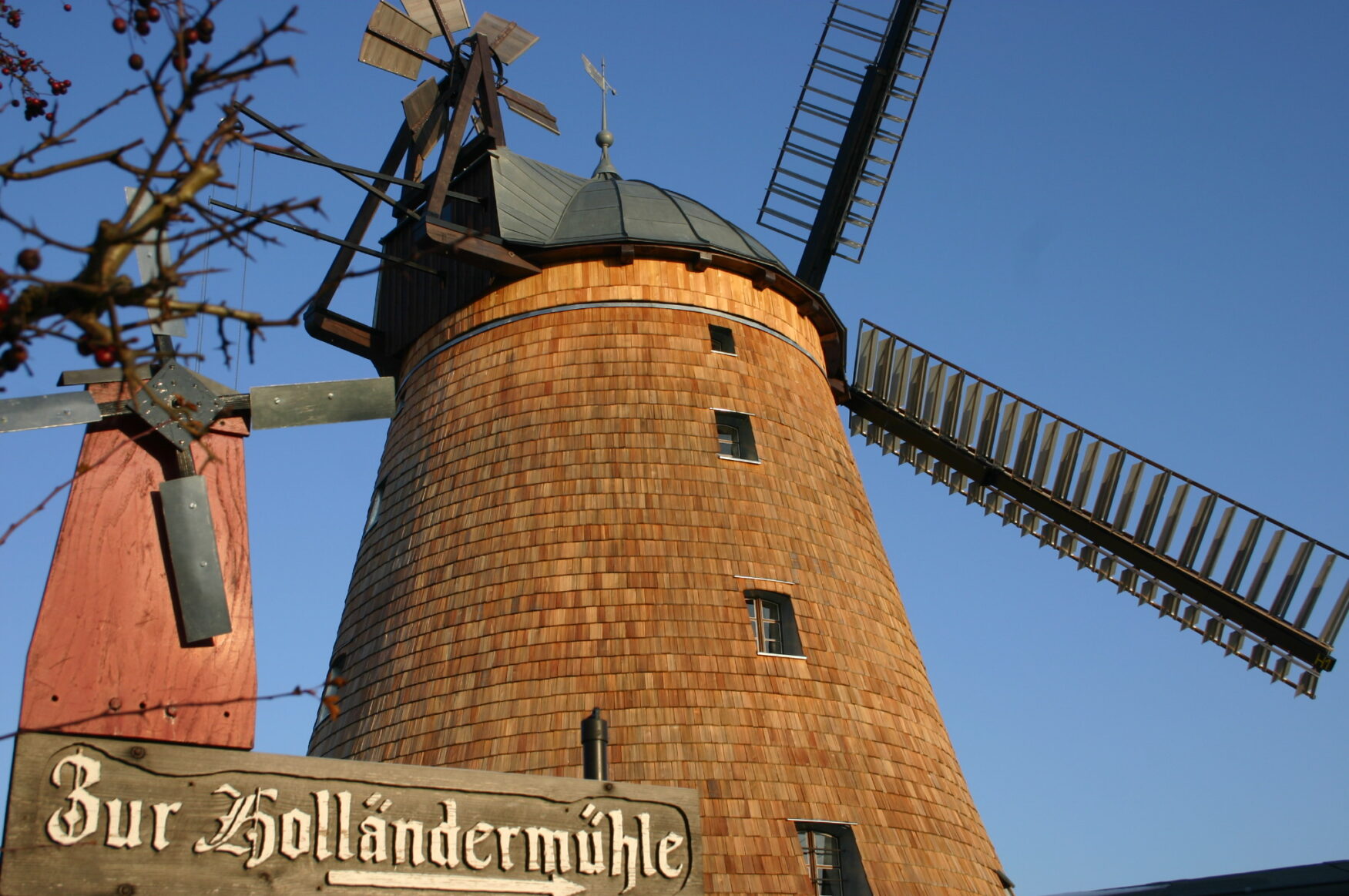Ebenso die Holländer Windmühle von Straupitz (Spreewald), Europas letzte Windmühle mit drei produzierenden Müllereigewerken unter einem Dach: Mahlen, Sägen und Öl. Dort erklärt der kundige Müller auch, wie das typische Klappergeräusch in den Mühlen zustande kommt. Das vom Vierknack verursachte Rütteln des Rüttelschuhs verursacht das vielzitierte “Klappern der Mühle”.