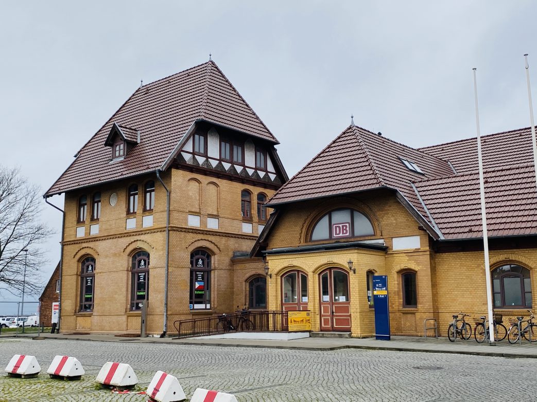 Dank der Hinweise der Rezeptionistin war das kein Problem – eine Viererkarte für 8,80 Euro kauften wir an der Straßenbahnhaltestelle Kröpeliner Tor, die direkt vor dem Hotel lag. Mit der Tramlinie 5 (oder 1) Richtung Mecklenburger Allee fuhren wir bis zur Station Holsteinplatz. Dort ging es mit der S-Bahn Richtung Warnemünde weiter. In gut 30 Minuten waren wir in Warnemünde-Werft. Wegen Bauarbeiten, die eigentlich schon im Dezember 2019 beendet sein sollten, mussten wir von hier mit dem Ersatzverkehrsbus bis zum Alten Strom fahren.