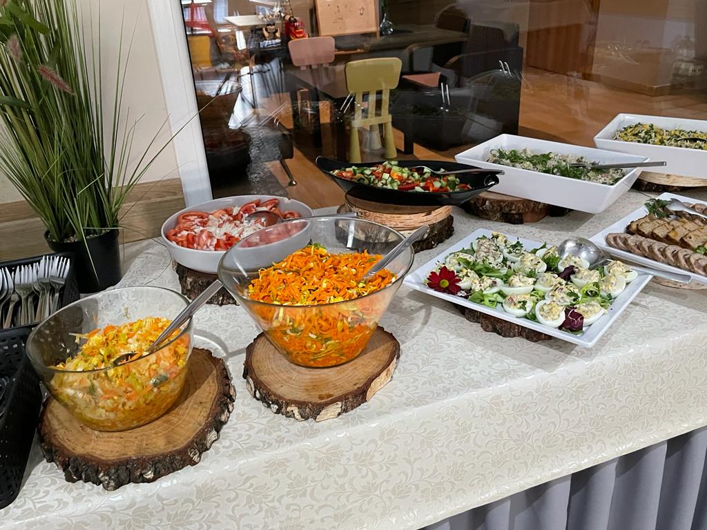 Leckeres zum Lunch, aber auch viele Salate gibt es