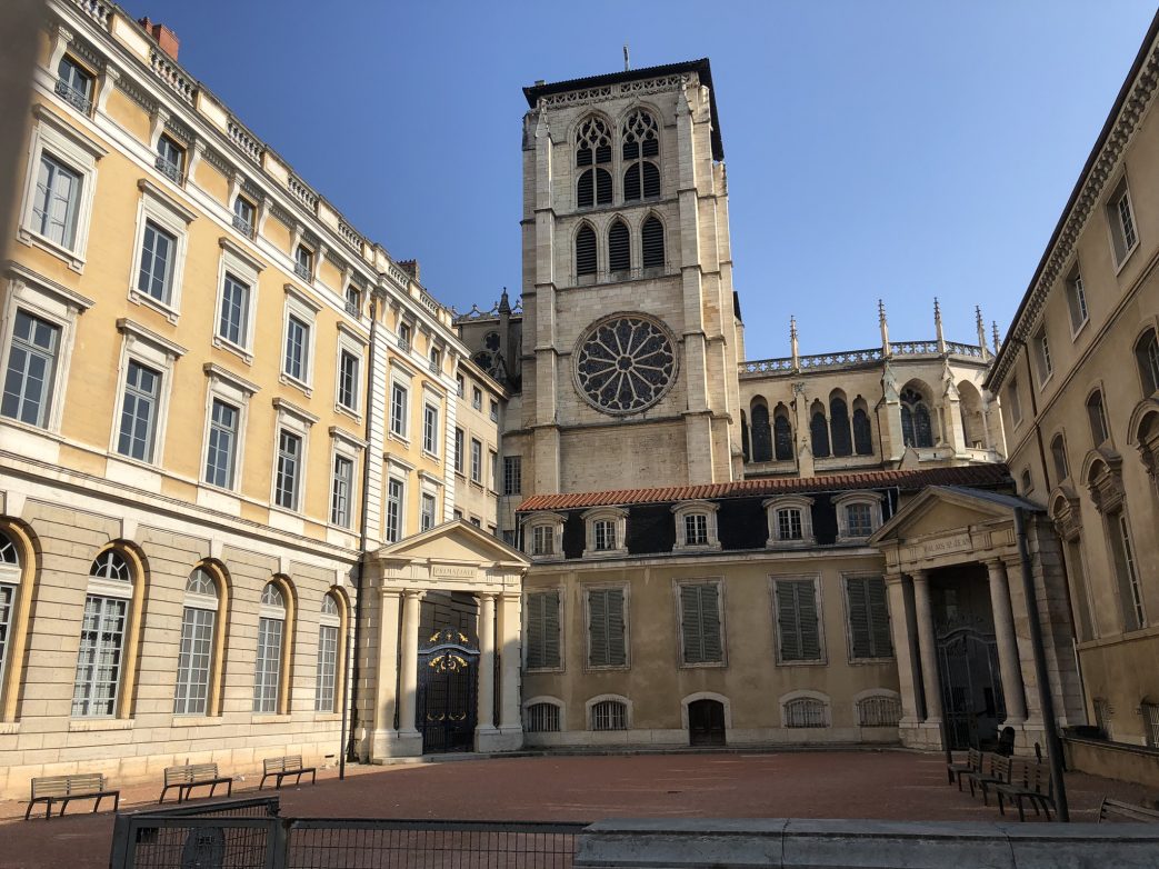 An der Place St-Jean unterhalb des Fourvière-Hügels erhebt sich die gleichnamige viertürmige Kathedrale (Baubeginn 12. Jahrhundert), die romanische und gotische Elemente miteinander vereint. Ihre Portale zieren über 300 Medaillons mit szenischen Darstellungen. Die astronomische Uhr stammt aus dem 14. Jahrhundert, die Buntglasfenster sind aus dem 13. Jahrhundert. In Vieux Lyon finden sich viele Traboules, überdachte schmale Durchgänge von einer Straße zur anderen. Eine der stimmungsvollsten führt über sechs Innenhöfe von Haus Nr. 54 in der Rue St-Jean zur Haus Nr. 27 in der parallelen Rue du Boeuf und steht tagsüber offen.