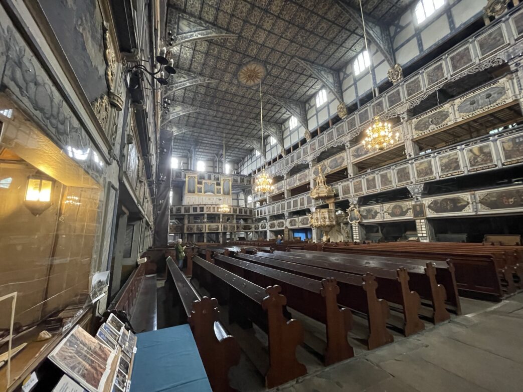 Nach rund 20 Minuten Fahrzeit kamen wir in Schweidnitz an, suchten lange nach einem Parkplatz in der Nähe der Friedenskirchen und waren begeistert von der Pracht dieser größten Fachwerkkirche, die wir jemals gesehen hatten.