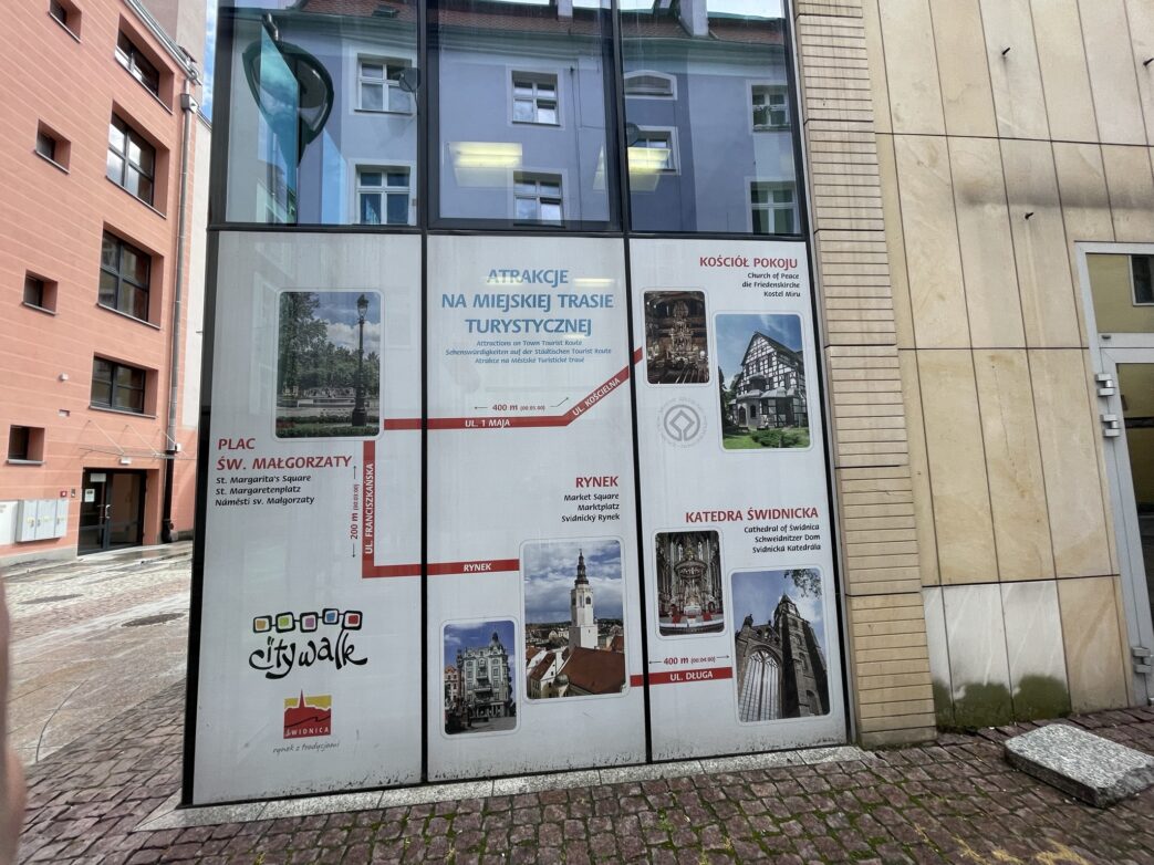 Für den Bau der Kościół Pokoju (Friedenskirche) in Świdnica wurde am 23. August 1656 der Grundstein gelegt. Bereits zehn Monate später fand dort der erste Gottesdienst statt. Während das Bauwerk von außen schlicht wirkt, ist es im Inneren umso prunkvoller ausgestattet. Zwei- und dreigeschossige Emporen umgeben den gesamten Innenraum. Insgesamt 7.500 Menschen finden in dem Gotteshaus Platz. Die auf dem Grundriss eines griechischen Kreuzes errichtete Kirche gilt damit als größter sakraler Fachwerkbau in Europa. Ab dem Ende des 17. Jahrhunderts wurde die ursprünglich recht einfach gehaltene Kirche immer mehr ausgeschmückt. In dieser Zeit entstanden auch die wertvollen Deckenmalereien. Sie stammen von den einheimischen Künstlern Christoph Kalicki und Christian Süßenbach und zeigen unter anderem den Fall Babylons und das Jüngste Gericht. Der barocke Hochaltar von August Gottfried Hoffmann wurde im Jahre 1752 eingeweiht. Er zeigt die Taufe Jesu’. Sechs Marmorsäulen tragen einen Baldachin. Über dem Hochaltar befindet sich die 1695 gefertigte kleine Orgel. Die 1666 bis 1669 von dem Brieger Meister Gottfried Klose gebaute große Barockorgel nimmt die gegenüberliegende Stirnseite ein. Die prachtvollste Loge entstand 1695 für die Familie von Hochberg, die Besitzer des nahe gelegenen Schlosses von Książ (Fürstenstein). Auf dem Friedhof vor der Kirche befindet sich ein Gemeinschaftsgrab für elf während der Märzrevolution von 1848 getötete Schweidnitzer Bürger.