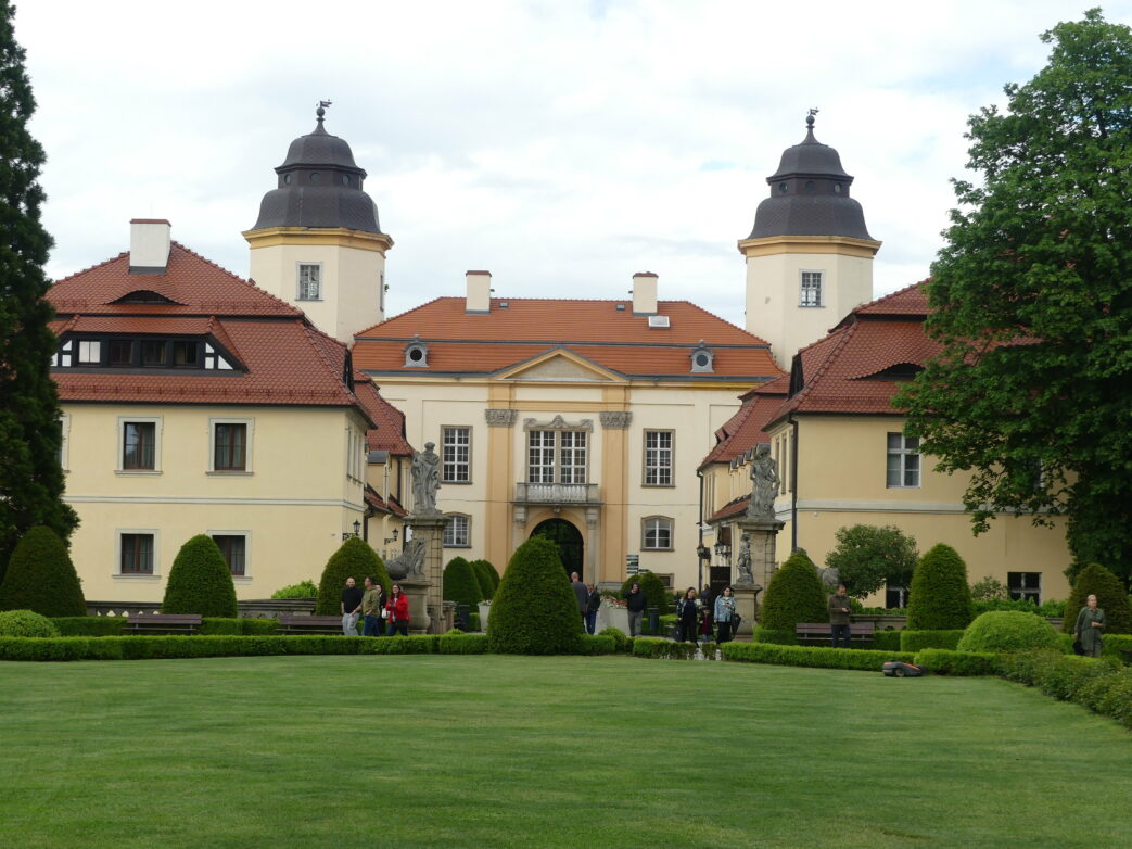 Auf Schlössertour in das Hirschberger Tal, rund eine Stunde von Görlitz (und vier Stunden von Berlin) entfernt. Ende Mai 2022 besuchten wir einige der schönsten Schlosshotels und Herrenhäuser in Niederschlesien. Im 18. und 19. Jahrhundert, als dort preußische Könige und viele Berühmtheiten sich dort erholten, wurde die Gegend um Jelena Gora (Hirschberg) auch das „Schlesische Elysium“ genannt. Keine Landschaft in Europa zählt auf so engen Raum mehr Schlösser und Burgen. Preußens Starachitekt Karl Friedrich Schinkel, sein Schüler Friedrich August Stüler und der Gartenkünstler Peter Josef Lennè hinterließen ihre Spuren.Doch es blieb nicht bei unserem Schlösser-Gucken, wir trafen auch auf charmante Städte (Schweidnitz und Jauer mit ihren zum UNESCO-Welterbe gehörenden Friedenskirchen), sowie auf das größte Schloss Schlesiens: den Fürstenstein/Kiasz. Immer im Blick hatten wir die 1600 Meter hohe Schneekoppe, den berühmtesten Gipfel des Riesengebirges. Bevor wir nach Breslau/Wroclaw fuhren, machten wir zwei Tage bei Kinga und Tomasz Kwaterski auf Schloss Birkholz/Pałac Gruszów Station. Das kleine Dorf Gruszów ist 8 Kilometer von Schweidnitz/Świdnica entfernt und eignet sich für Ausflüge in eine reizvolle Umgebung, so in das benachbarte Kreisau mit dem Gut und Ausstellungen zum Kreisauer Kreis.