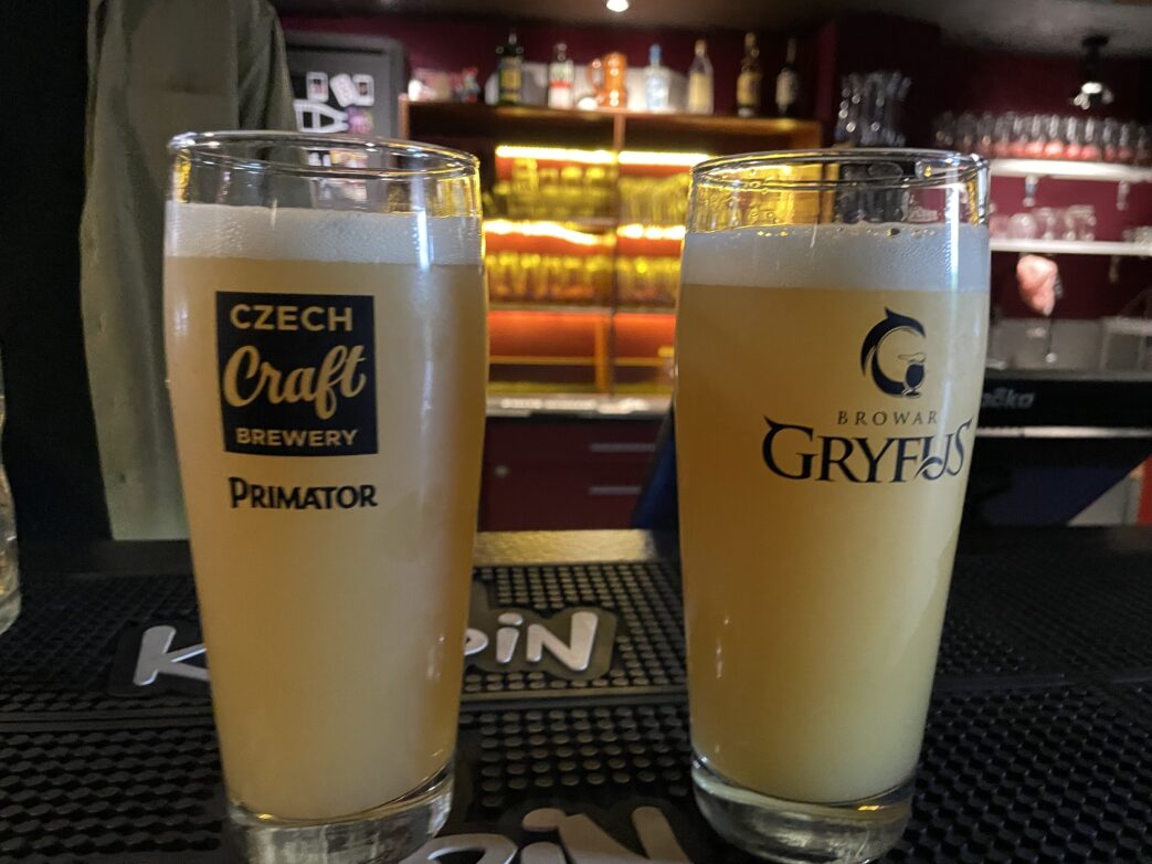 Mittlerweile trafen wir unseren in Stettin geborenen Freund Konrad, der mit uns in die Kino-Kneipe Český Film ging. Schon der Abstieg in den Keller dieses angesagten Craftbierbar wirkt wie eine Zeitreise. Während wir klamaukige Streifen und Filmplakate (meist mit Autogrammen) bestaunten, probierten wir ein Craftbier, dem Kurkuma zugesetzt war. Es war eine der Überraschungen dieses Wochenendes. Český Film ist täglich ab 16 Uhr geöffnet, sonnabends und sonntags ab 10 Uhr. Mehr findet ihr hier zu Cesky Film
