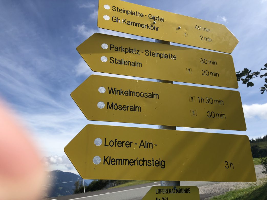 Für uns wir die Aussichtsplattform der Höhepunkt auf unserer kleinen Wandertour. Die begehbare Plattform in Form einer Fächerkoralle ließ uns fast 70 Meter über dem Abgrund schweben. Sie lieferte nicht nur spektakuläre Tiefblicke auf Gebirgswände, sondern auch atemberaubende Aussichten auf die Steinplatte: die Loferer Steinberge, die Hohen Tauern, die Kitzbühler- und Zillertaler Alpen sowie den imposanten Wilden Kaiser. Hier oben war der Alltag mit seinen Stressfaktoren vergessen: wir fühlten uns glücklich und frei, beobachteten das Treiben der Wanderer, der Familien, der Kinder. Selbst die Kühe, die gemütlich auf den Wiesen standen oder lagen, schienen sich ob des Treibens auf dem Rundweg wohl zu fühlen …
