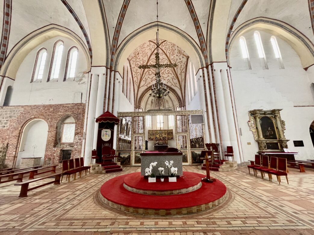 Es ist ein Backsteinbau von gewaltigen Maßen: Über einem kreuzförmigen Grundriss (63 x 81 Meter) erhebt sich ein Hauptschiff mit zwei Seitenschiffen. Oberhalb des Hauptportals zieht eine vergoldete Barockorgel (1699) die Blicke auf sich. Sie zählt 3308 Pfeifen und 47 Register. Ihre Klangfülle entfaltet sie v.a. bei Konzerten im Rahmen des Orgelfestivals (von Juni bis August). Vom wuchtigen Turm bietet sich im Sommer ein weiter Blick über die Landschaft. Von hier aus sind es nur wenige Schritte bis zum Marktplatz , wo das gotische Rathaus steht. Rings um den Platz wurden einzelne Bürgerhäuser restauriert, so das Eckhaus „Zu den Musen“.