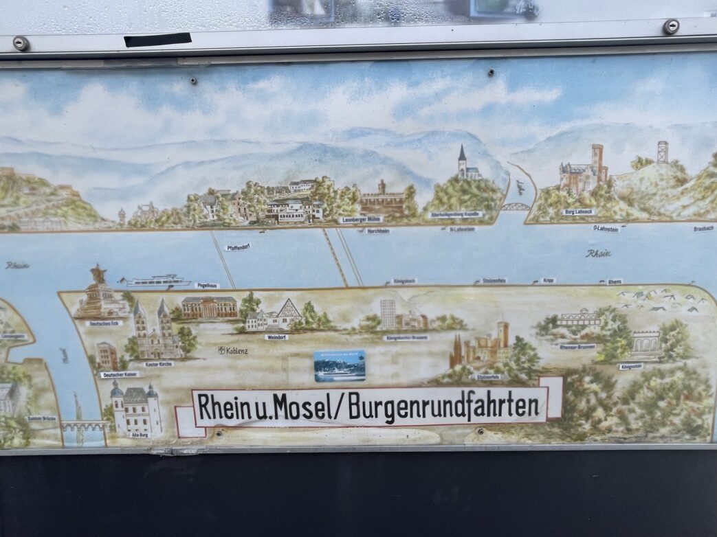 Von der überschwänglichen Romantik von damals war auf unserer Reise kaum mehr etwas zu spüren. Die „Autobahn“ für Schiffe ließ kaum noch romantische Gefühle aufkommen. Aber dennoch faszinierte uns das Mittelrheintal mit seinem engen, schlingenreichen Durchbruchstal durch das Rheinische Schiefergebirge. An dessen Steilhängen und auf Höhen liegen über 60 Schlössern, Burgen und Ruinen aus dem 11. und 12. Jahrhundert. Und seine im Tal liegenden Ortschaften mit ihren Kirchen- und Kirchtürmen, bunten Häuserzeilen, schönen architektonischen Tunnel-Eingängen bilden sehenswerte Blickpunkte. Nicht ohne Grund wurde der Mittelrhein-Abschnitt zwischen Bingen und Koblenz auf einer Länge von 70 Kilometern von der UNESCO als „Kulturlandschaft Oberes Mittelrheintal“ in die Weltkulturerbe-Liste aufgenommen.