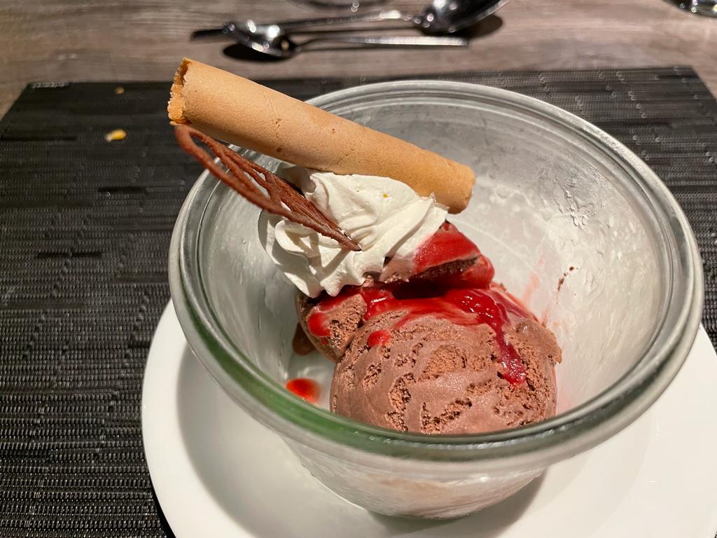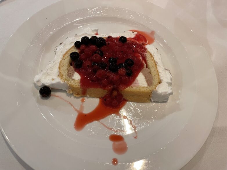 Zu einer Weihnachtskreuzfahrt gehören natürlich auch kulinarische Erlebnisse. Diese gab es auf Nicko Spirit jeden Tag. Das Mittags- und Abendmenü wurde im Restaurant an weißgedeckten Tischen gereicht. Wer wollte, konnte sich auch in Mario’s Grill verwöhnen lassen, wenn man zuvor reserviert hat. In the Garden der Lounge (im Sommer auf dem Vordeck) gab es einen Lunch, der so beliebt war, dass täglich mehr Gäste sich dort einfanden.