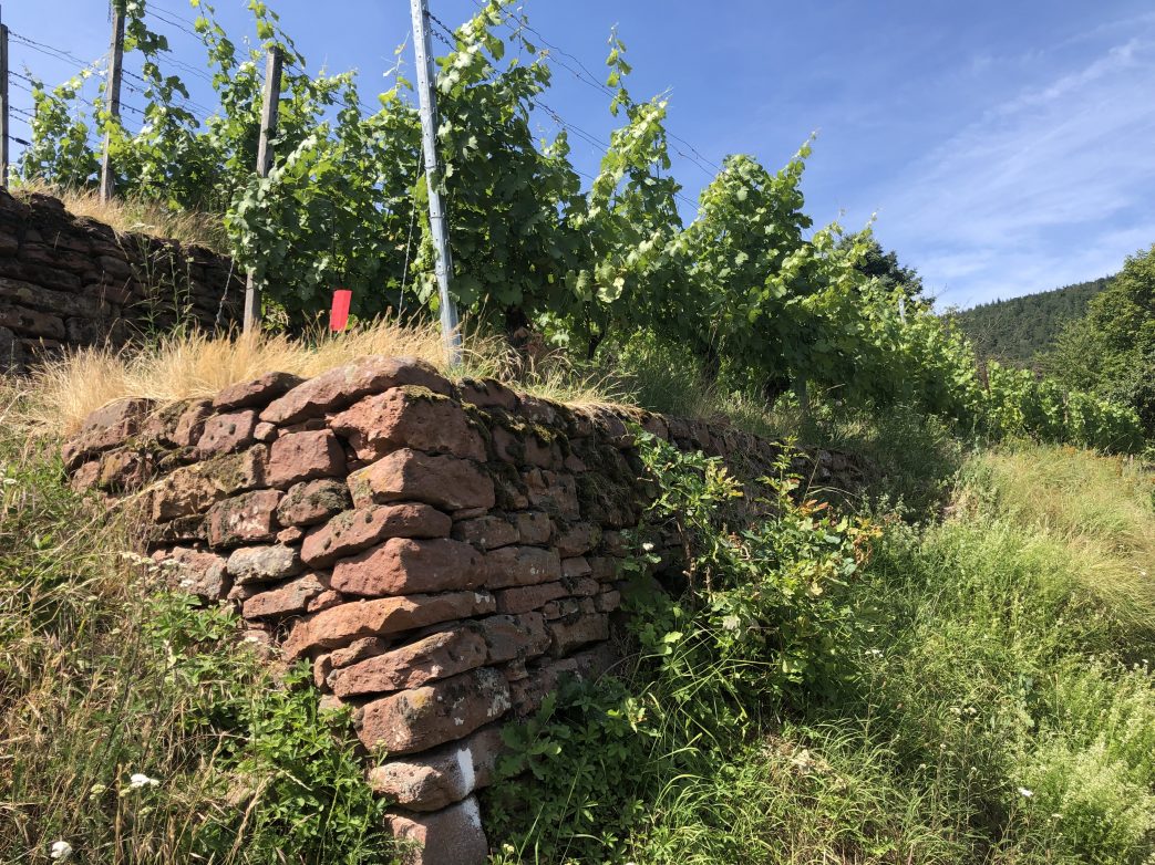 Während der Führung in seinen Weinbergen im Terrior des Centgrafenbergs und Hundsrück mit ihren kunstvollen Trockenmauern aus Buntsandstein erzählt Burkhard Hench, dass für die Winzer die aufmerksame Beobachtung des Ökosystems Weinberg besonders wichtig ist: Düngung und Pflanzenschutz, soweit es notwendig ist, biologisch-dynamisch zu gewährleisten; mit Leguminosenanbau und Wildkräutern in den Rebanlagen die Vielfalt zu pflegen und mit Kräutertee und Pflanzenauszügen die Gesundheit der Reben beeinflussen.
