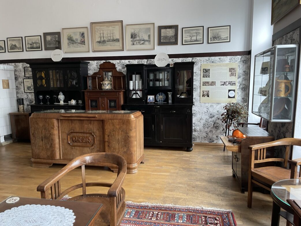 Heute ist das Schloss Mittelpunkt eines Kulturzentrums. Mit der ständigen Ausstellung „Das Treptow der Kaufleute“ tauchten wir in die preußische Vergangenheit der Stadt ein. Wir lernten eine sehr lebendige Kultureinrichtung kennen. Sie wurde an diesem Mittwoch von Jung und Alt genutzt. Im ersten Stock saßen sehr freundliche ältere Damen im ehemaligen Fürstensaal bei einem Käffchen zusammen. Sie hätten uns wohl sehr gern zu ihrem Plausch dazu geladen, aber unsere Zeit war begrenzt. In der Lionel-Feininger-Galerie trafen wir auf junges Publikum. Inmitten einer aktuellen Gemäldeausstellung probten junge Künstler sich malerisch an Motiven ihrer Stadt, einige Jungs bauten an einem Modell der Marienkirche. Die idyllische Atmosphäre inspirierte Künstler, in Deep ihre Sommerfrische zu verbringen. So verbrachte Loyenel Feininger einige Sommer in Treptower Deep. Hier entstanden, wie Wikipedia berichtet einige seiner bekanntesten Werke: „Yachtrennen (1925), Stiller Tag am Meer (1926), Regamündung I und Regamündung II (1927), Die große Kutterklasse (1929), Deep, Sonnenuntergang (1930), West-Deep (1931), Dünen am Strand (1936), Schwarze Welle (1937), Dunes (Küste von Deep, 1945), The Baltic (Die Ostsee, 1947).“