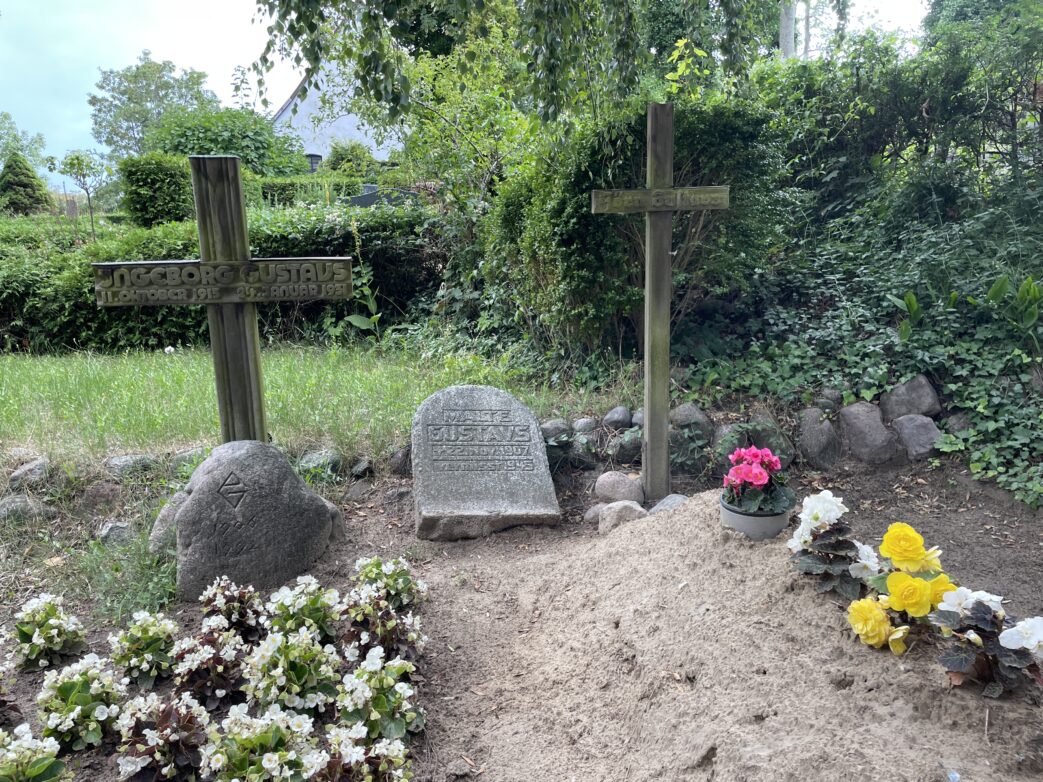 Auch die Holzkreuze der Familie Arnold, Gustav Arnold hat als Inselpfarrer lange Jahre gewirkt, sind bescheiden. Wie die vielen kleinen Grabsteine auf diesem Friedhof. Den meisten ist gemein, dass sie mit einem Hauszeichen versehen sind. Ein Zeichen dafür, dass es sich um alteingesessene Hauseigentümer der Insel handelt. Viele der Grabsteine tragen die Namen Schluck und Gau … alte Hiddenseer Familien. Wir sind froh, diese kleine Erholungsinsel in unserer Pause aufgesucht zu haben.